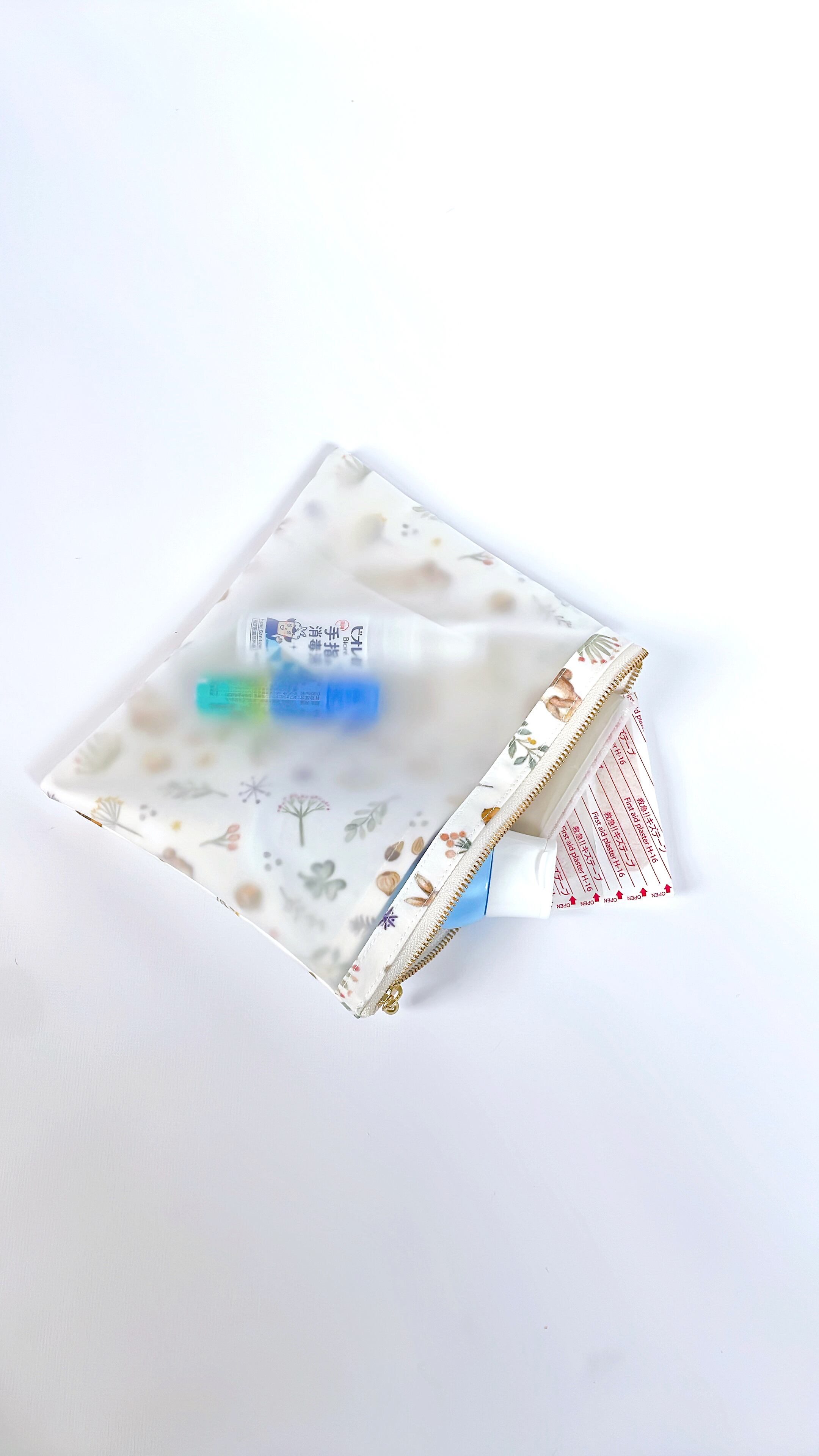 そんな衛生用品を一つに纏められるビニールポーチをお作りしました。
